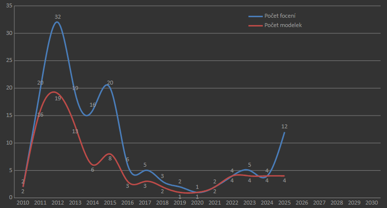 V roce 2025 jsem realizoval celkem 12 focení a to se čtyřmi modelkami.